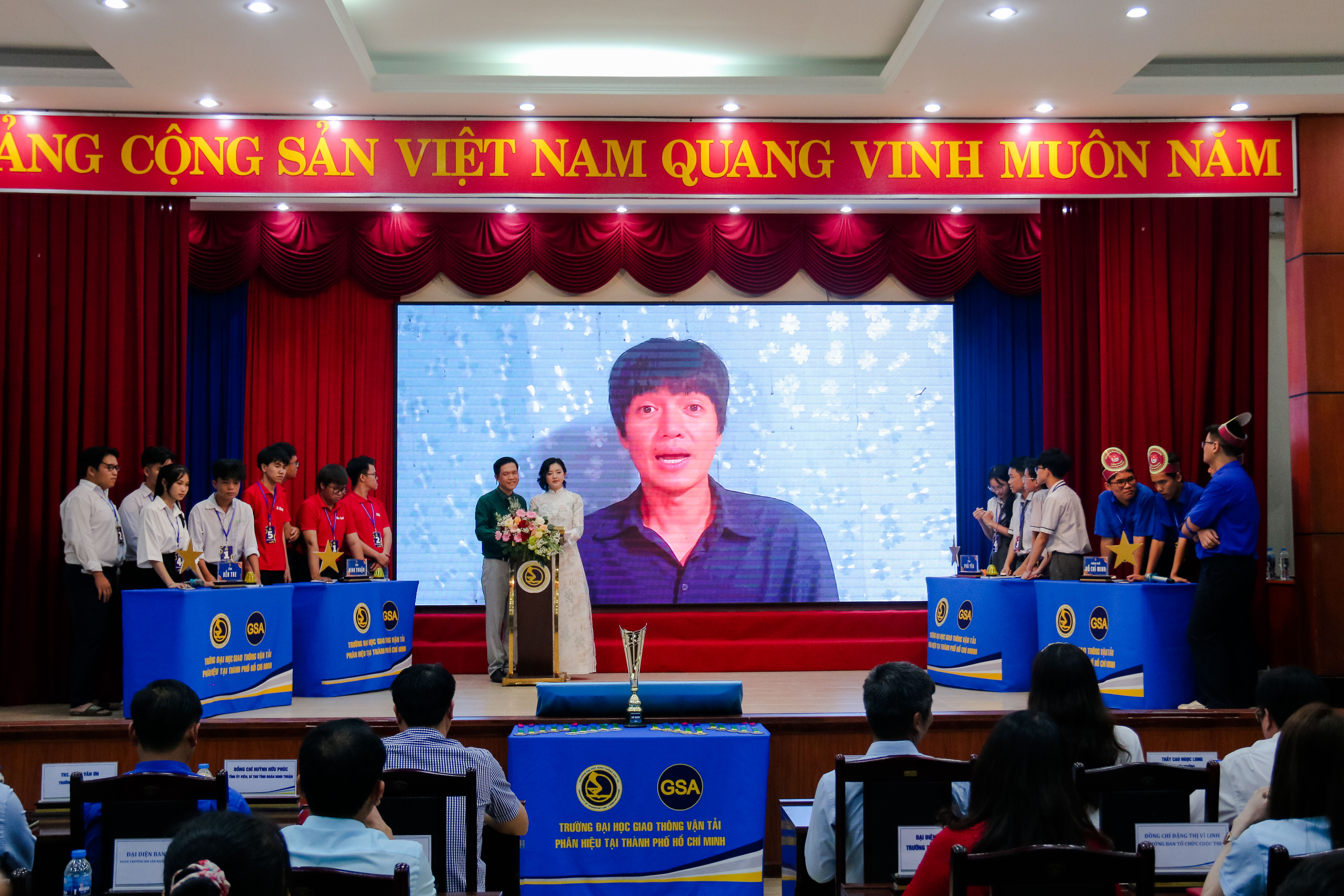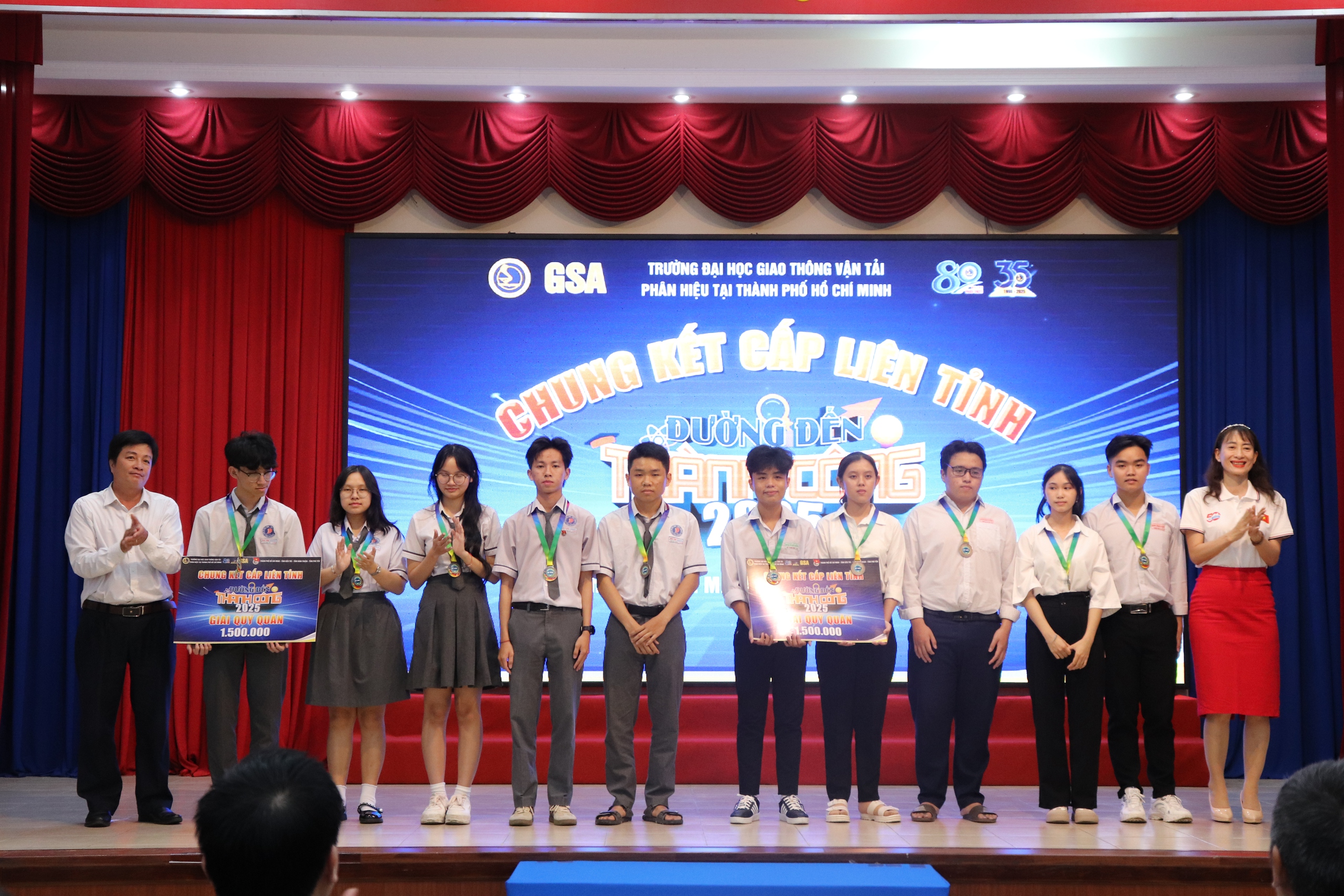 Tối ngày 19/4/2025, tại Hội trường C1 - Phân hiệu Trường Đại học Giao thông vận tải tại TP. Hồ Chí Minh đã diễn ra trận Chung kết cấp liên tỉnh cuộc thi “Đường đến thành công” năm 2025 giữa 4 đội thi đến từ 4 tỉnh, thành phố: Bến Tre, Phú Yên, Ninh Thuận và TP. Hồ Chí Minh.